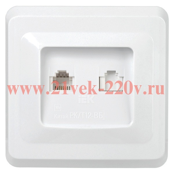 Розетка телекоммуникационная с двумя разъемами RJ45+RJ11, Вега ИЭК, белого цвета EIV20-K01-DM