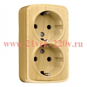 Розетка 2-местная ОП Минск 16А с заземлением светлое дерево EKF