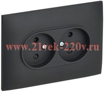 Двухместная электрическая розетка без заземляющих контактов с защитными шторками, винтовые зажимы скрытого монтажа цвета графит