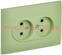 Двухместная электрическая розетка без заземляющих контактов с защитными шторками, винтовые зажимы скрытого монтажа мятного цвета