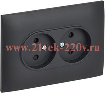Двухместная электрическая розетка без заземляющих контактов с защитными шторками, винтовые зажимы скрытого монтажа цвета титан