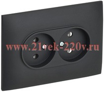 Двухместная электрическая розетка без заземляющих контактов, винтовые зажимы скрытого монтажа цвета графит
