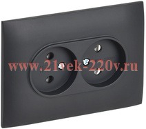 Двухместная электрическая розетка без заземляющих контактов, винтовые зажимы скрытого монтажа цвета титан