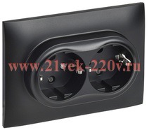 Двухместная электрическая розетка с заземляющими контактами с защитными шторками, винтовые зажимы скрытого монтажа цвет черный
