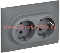 Двухместная электрическая розетка с заземляющими контактами с защитными шторками, винтовые зажимы скрытого монтажа серого цвета