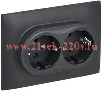 Двухместная электрическая розетка с заземляющими контактами с защитными шторками, винтовые зажимы скрытого монтажа цвета титан