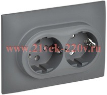 Двухместная электрическая розетка с заземляющими контактами, винтовые зажимы скрытого монтажа серого цвета