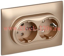 Двухместная электрическая розетка с заземляющими контактами, винтовые зажимы скрытого монтажа песочного цвета