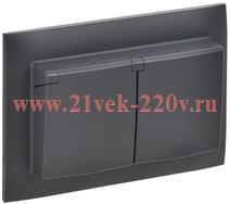 Двухместная электрическая розетка с заземляющими контактами, защитными шторками и крышкой, винтовые зажимы скрытого монтажа цвета титан