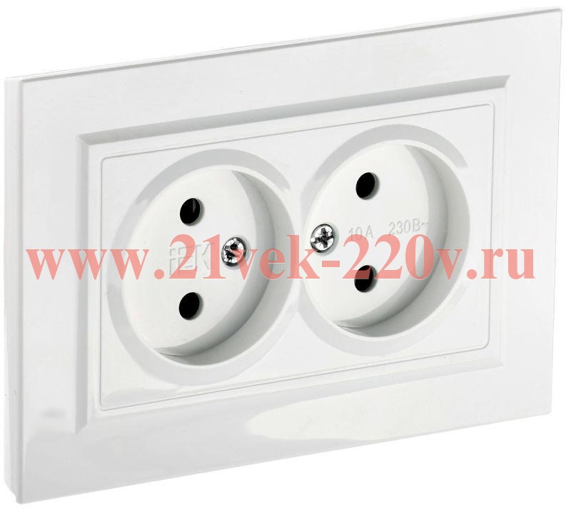 Двухместная двухполюсная электрическая розетка белого цвета для скрытого монтажа в одну монтажную коробку, IEK BRITE. BR-R20-10-K01-F