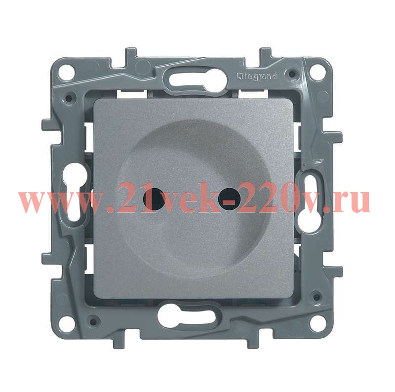 Розетка без заземления (672434), со шторками и винтовым зажимом Легранд (Legrand) серии Этика Плюс (Etika Plus). Цвет - алюминий.