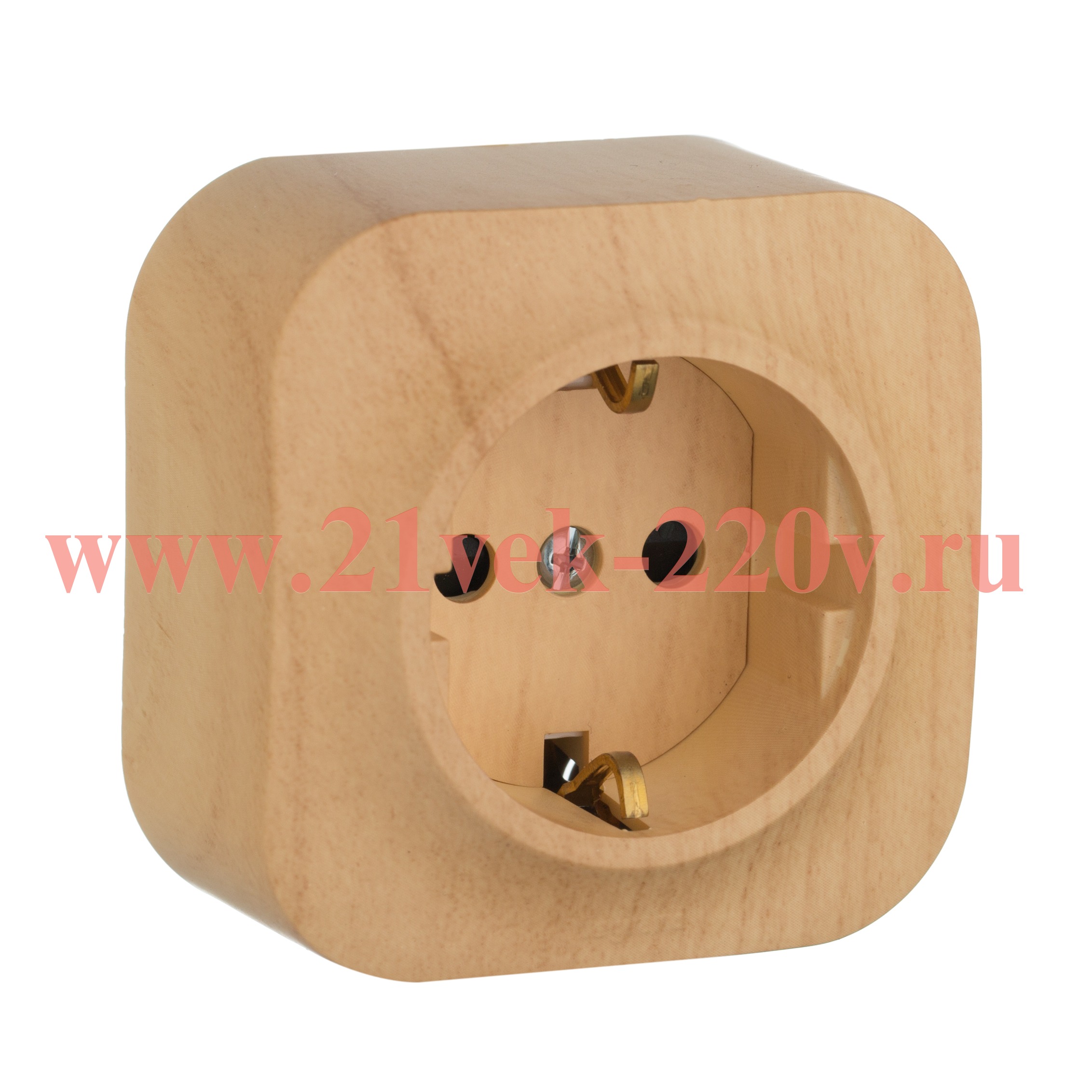Розетка 2К+З (с контактом заземления) с защитными шторками 6A-250В~ дерево Legrand Quteo
