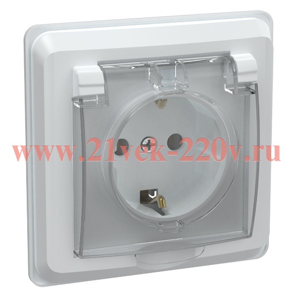 Однопостовая розетка скрытого монтажа с заземлением со шторками, с защитной крышкой, Вега ИЭК, белого цвета ERV16-K01-16-DM