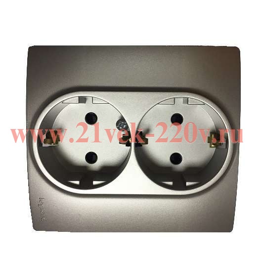 Двойная розетка с заземлением(672433) Легранд (Legrand) серии Этика Плюс (Etika Plus). Цвет - алюминий.