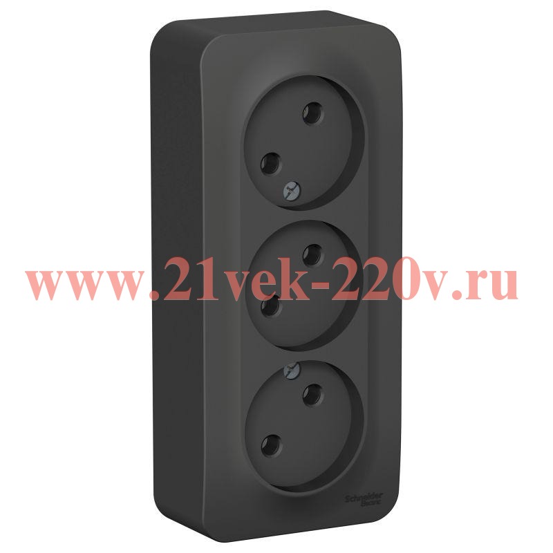 Тройная розетка О/У без заземления, без шторок, с изолирующей пластиной, 16А, 250В, антрацит Schneider Electric Blanca