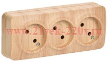 Розетка тройная без заземляющего контакта, накладного монтажа Глори ИЭК цвет сосна ERH30-K34-10