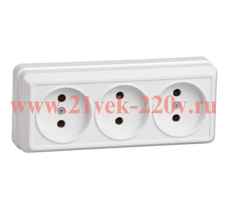 Розетка электрическая тройная, без заземляющих контактов, накладного монтажа Октава ИЭК белого цвета