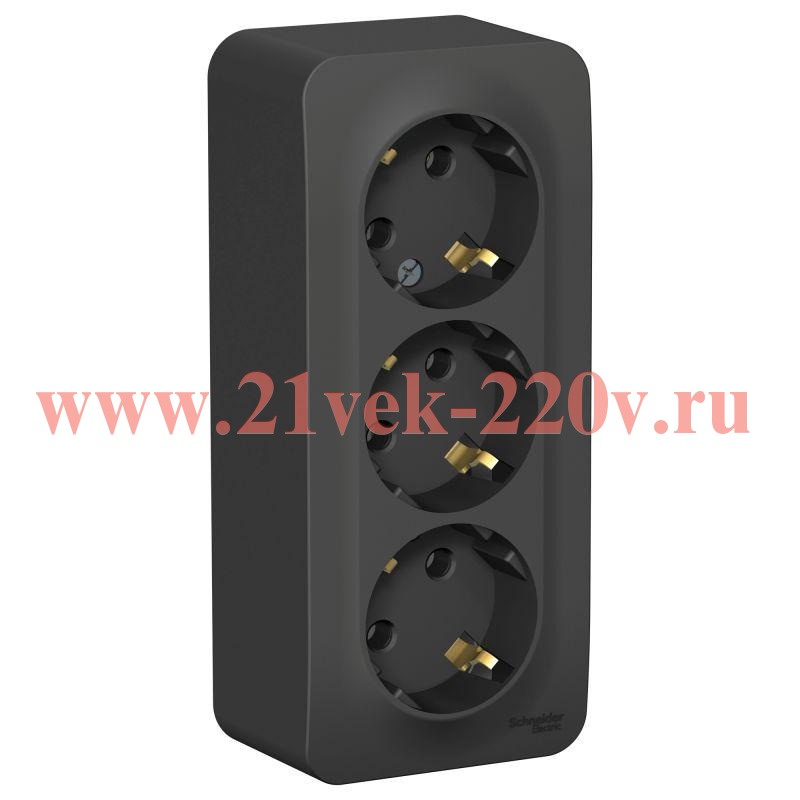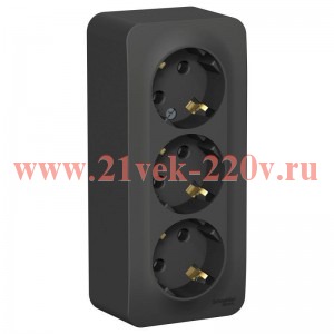 Тройная розетка О/У без заземления, со шторками, с изолирующей пластиной, 16А, 250В, антрацит Schneider Electric Blanca
