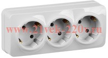 Розетка тройная с заземляющими контактами и защитными шторками, накладного монтажа Глори ИЭК белого цвета ERH31-K01-16