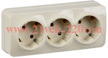 Розетка тройная с заземляющими контактами и защитными шторками, накладного монтажа Глори ИЭК кремового цвета ERH31-K33-16