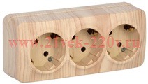 Розетка тройная с заземляющими контактами и защитными шторками, накладного монтажа Глори ИЭК цвет сосна ERH31-K34-16