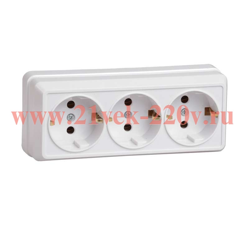 Розетка электрическая тройная, с заземляющими контактами, накладного монтажа Октава ИЭК белого цвета