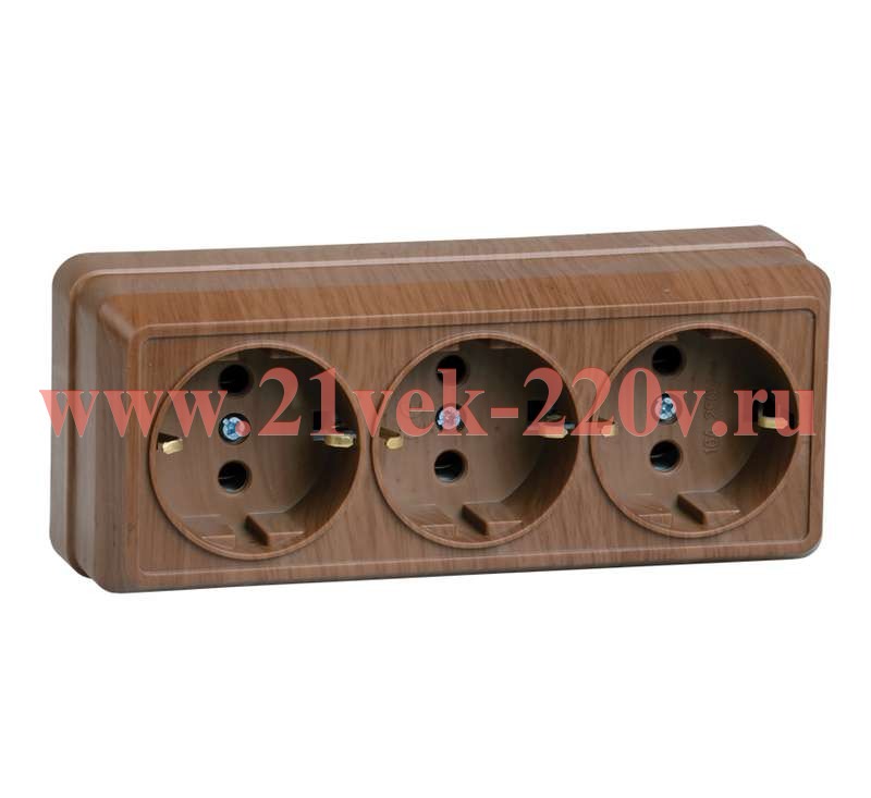 Розетка электрическая тройная, с заземляющими контактами, накладного монтажа Октава ИЭК цвет дуб