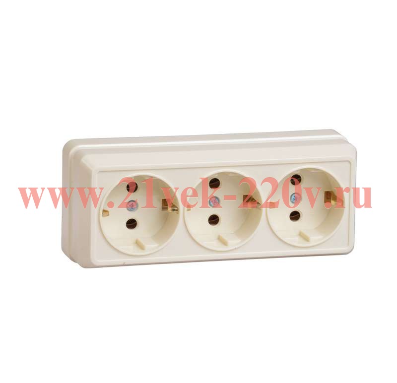 Розетка электрическая тройная, с заземляющими контактами, накладного монтажа Октава ИЭК кремового цвета