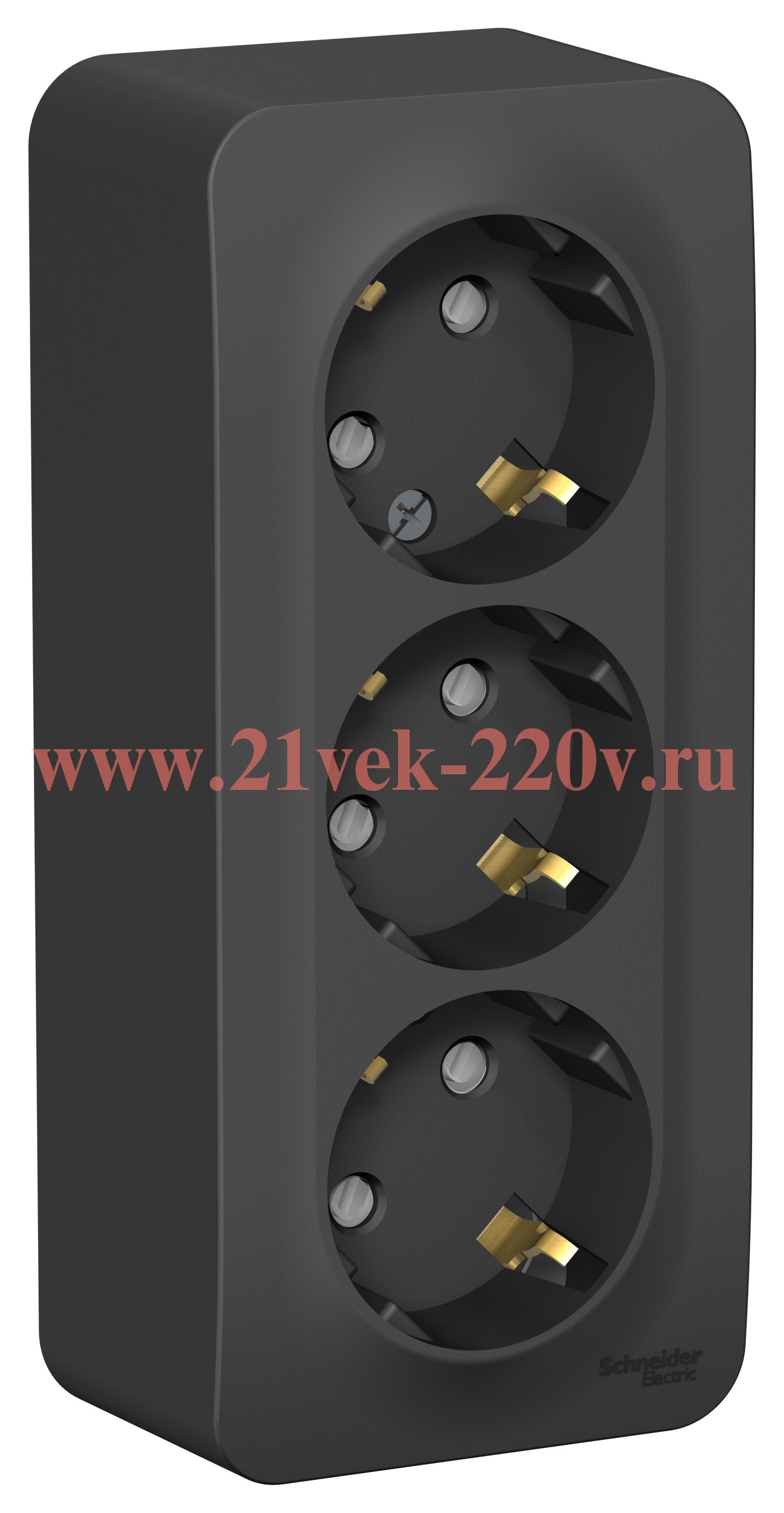 Тройная розетка О/У с заземлением, со шторками, с изолирующей пластиной, 16А, 250В, антрацит Schneider Electric Blanca
