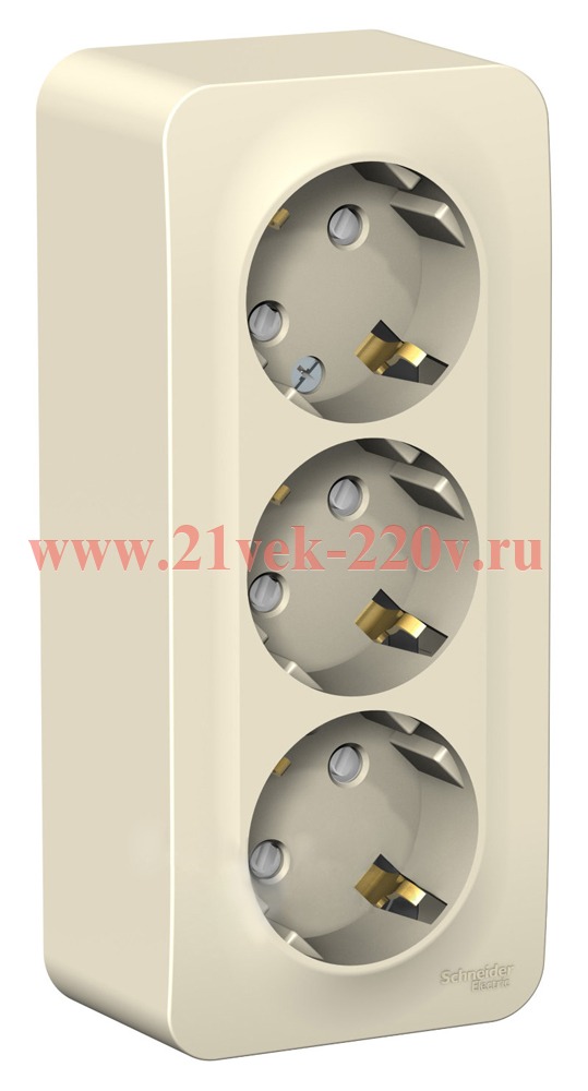 Тройная розетка О/У с заземлением, со шторками, с изолирующей пластиной, 16А, 250В молочный цвет Schneider Electric Blanca