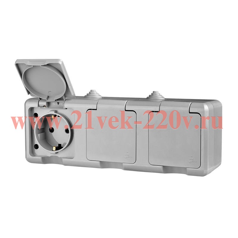 Розетка 3-м ОП Dita 16А IP54 250В с заземл. с сер. крышкой сер. TOKOV LIGHT TKL-DT-R3Z-C06-IP54