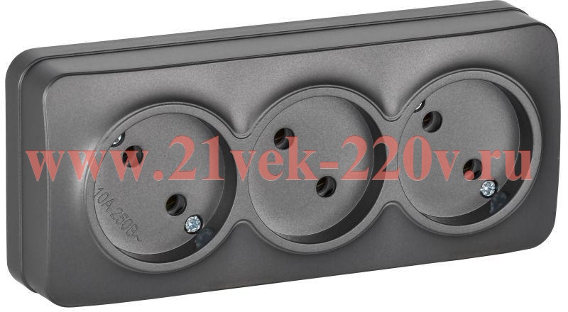 Розетка 3-м ОП GLORY РС23-2-ХСм 10А без заземл. без защ. шторок сталь матов. IEK ERH30-K46M-10