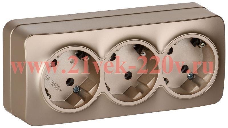 Розетка 3-м ОП GLORY РС23-3-ХШм 16А с заземл. без защ. шторок шампань матов. IEK ERH31-K37M-16