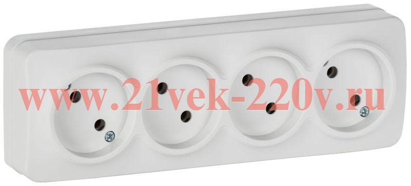 Электрическая двухполюсная розетка накладного монтажа четыре поста Глори ИЭК матового белого цвета ERH40-K01M-10