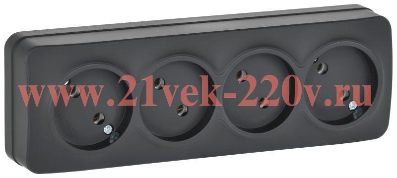 Электрическая двухполюсная розетка накладного монтажа четыре поста Глори ИЭК матового черного цвета ERH40-K02M-10