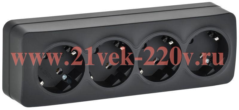 Электрическая розетка с заземляющими контактами четыре поста, накладного монтажа Глори ИЭК матового черного цвета ERH41-K02M-16
