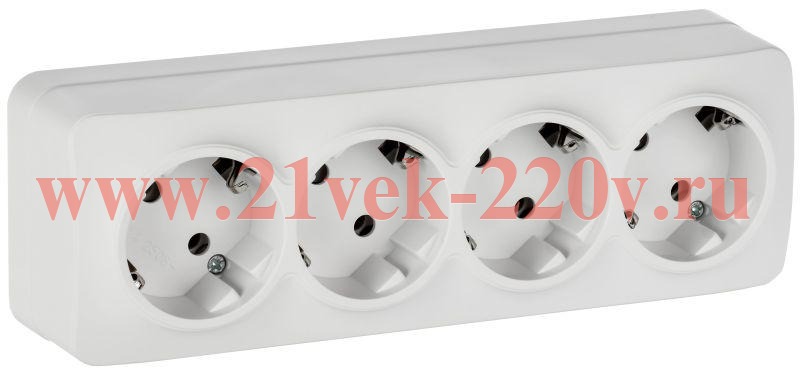 Электрическая розетка с заземляющими контактами четыре поста, накладного монтажа Глори ИЭК матового белого цвета ERH41-K01M-16
