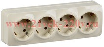 Розетка четверная с заземляющими контактами и защитными шторками, накладного монтажа Глори ИЭК кремового цвета ERH41-K33-16