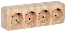 Розетка четверная с заземляющими контактами и защитными шторками, накладного монтажа Глори ИЭК цвет сосна ERH41-K34-16