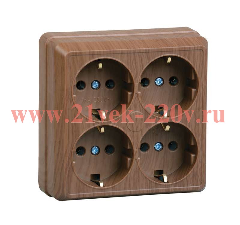 Розетка электрическая четверная, с заземляющими контактами, накладного монтажа Октава ИЭК цвет дуб