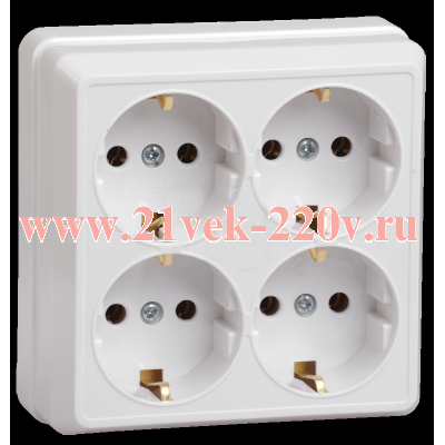 Розетка электрическая четверная, с заземляющими контактами, накладного монтажа Октава ИЭК кремового цвета
