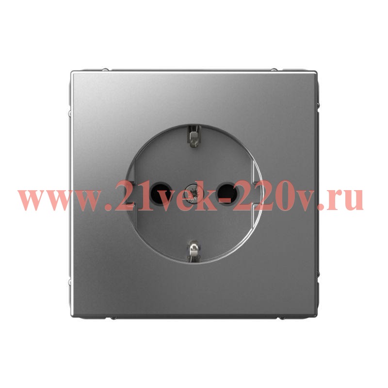 Встраиваемая электрическая силовая розетка с заземлением и защитными шторками АртГеллери стального цвета Систем Электрик