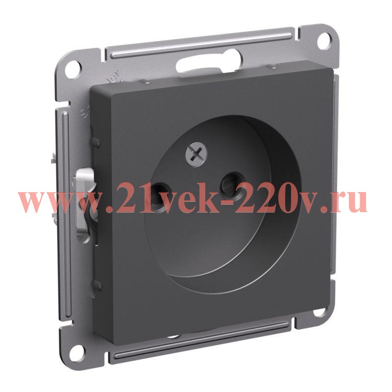 Встраиваемая электрическая силовая розетка скрытой установки без заземления с защитными шторками, цвет базальт, Атлас Дизайн
