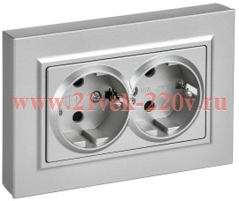 Розетка BRITE 2-я с з/к/ш пл 16А в сб. РСшПл12-3-БрА алюм. IEK BR-R28-16-K47-F
