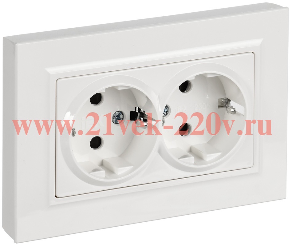 Розетка BRITE 2-я с з/к/ш пл 16А в сб. РСшПл12-3-БрБ бел. IEK BR-R28-16-K01-F