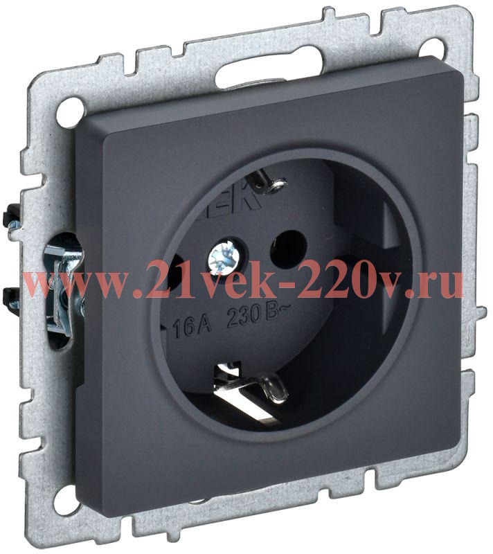 Механизм электрической розетки немецкого стандарта с защитными шторками и лицевой панелью графитового цвета для скрытого монтажа, IEK BRITE. BR-R14-16-K53