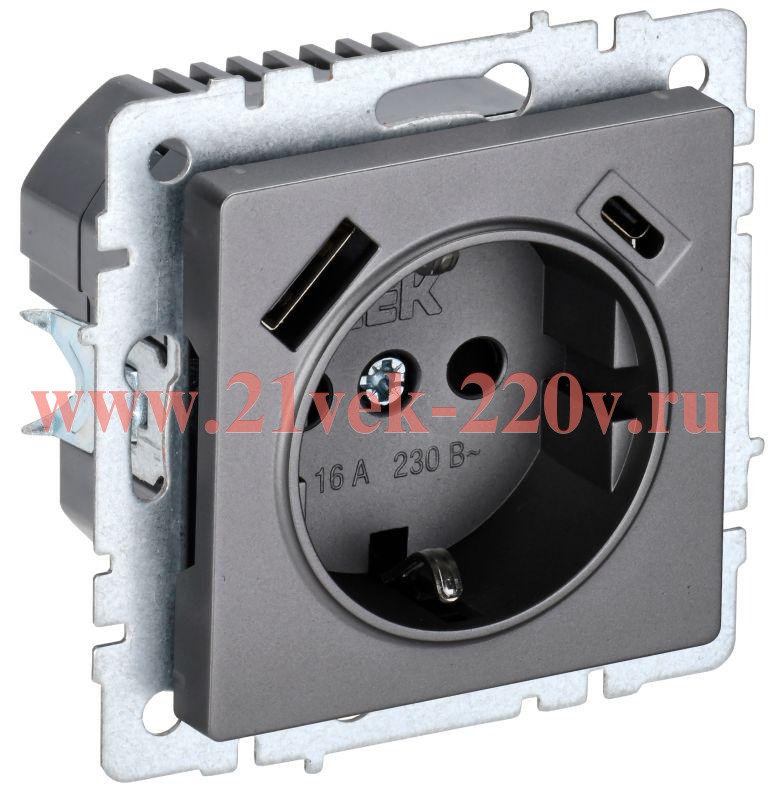 Розетка BRITE РЮш11-1-БрС 16А с USB A+C 18Вт с заземл. защ. шторки сталь IEK BR-R14-16-U22-018-K46