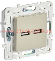 Розетка зарядная с двумя USB разъемами тип А, скрытого монтажа бежевого цвета