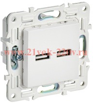 Розетка зарядная с двумя USB разъемами тип А, скрытого монтажа белый цвет