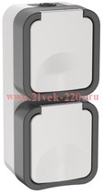 Двухместная вертикальная влагозащищенная электрическая розетка с защитными шторками и крышкой для открытой установки, белый цвет, Торс IEK